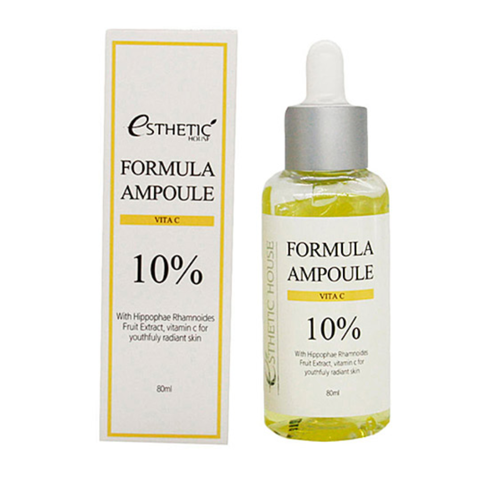 Сыворотка для яркости тона с витамином С (10%) и экстрактом облепихи Esthetic House Formula Ampoule Vita C мягко осветляет общий тон кожи и помогает в борьбе с пигментацией и пост-акне. Эффективно увлажняет, освежает и тонизирует, улучшает цвет лица.
