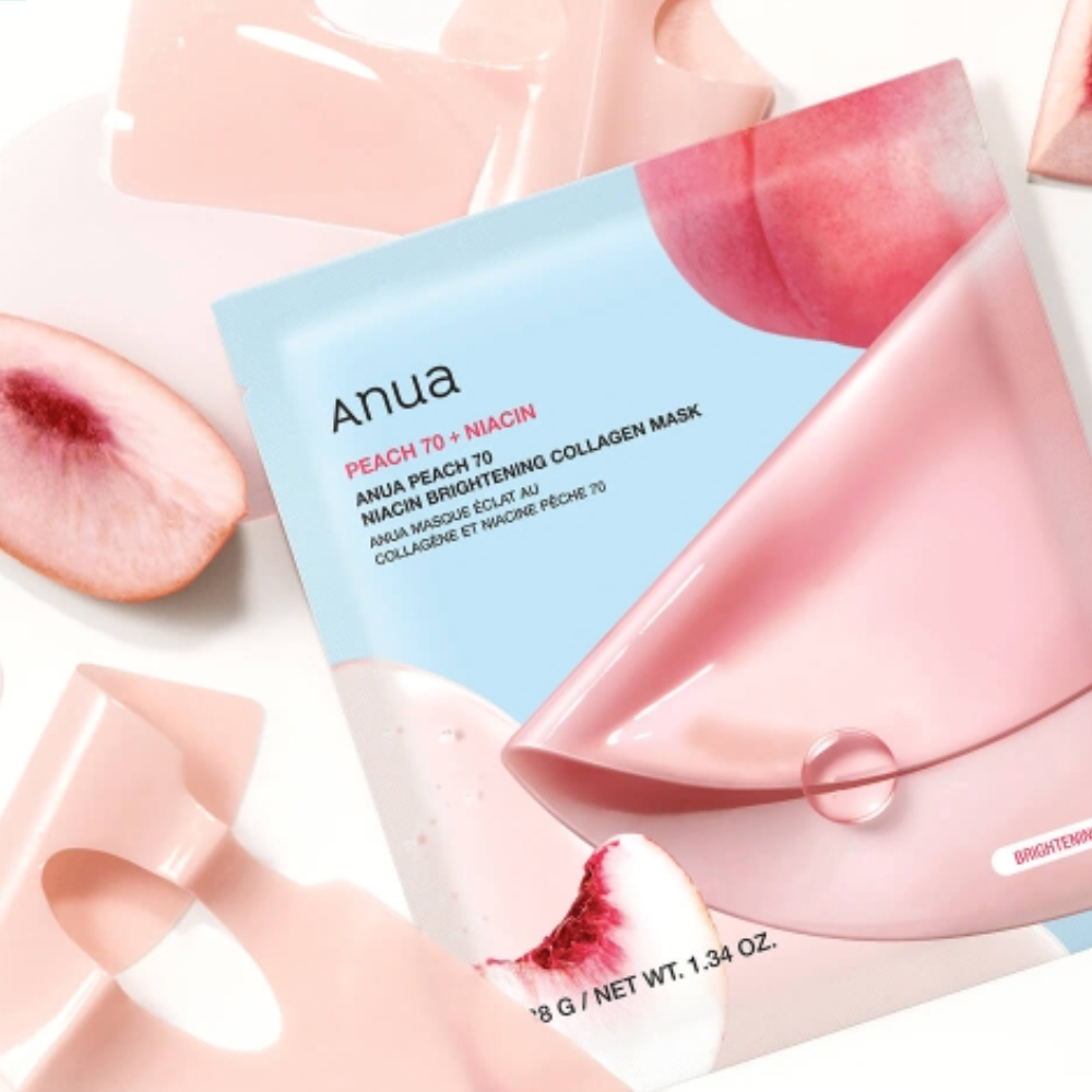 Осветляющая гидрогелевая маска с персиком Anua Peach 70 Niacin Brightening Collagen Mask смягчает огрубевшие участки и разглаживает микрорельеф, устраняет тусклость и выравнивает тон, возвращает лицу здоровый цвет и сияние. Способствует осветлению гиперпигментации и сальных нитей, сужает поры.